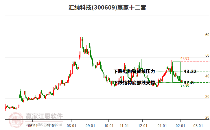 匯納科技根據(jù)贏家江恩極反通道趨勢工具展示,上方壓力位50.448,下方支撐位41.0061。匯納科技處于贏家江恩多頭中期回調(diào)形態(tài),從1月19日形成頂分型后持續(xù)下跌,重心下移,今日跌破前低形成短期初次筑