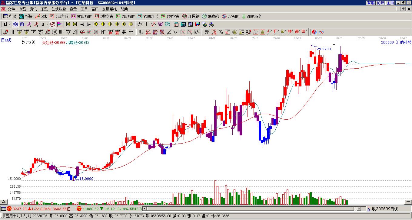 匯納科技今日高開0.32元,至收盤漲幅10.89%,以上下影大陽線收盤。匯納科技處于贏家江恩多頭主線形態(tài),日內(nèi)重心上移,延續(xù)短期江恩底分型后的上攻,根據(jù)贏家江恩工具五星來看,今日星級評定為5星,與昨日