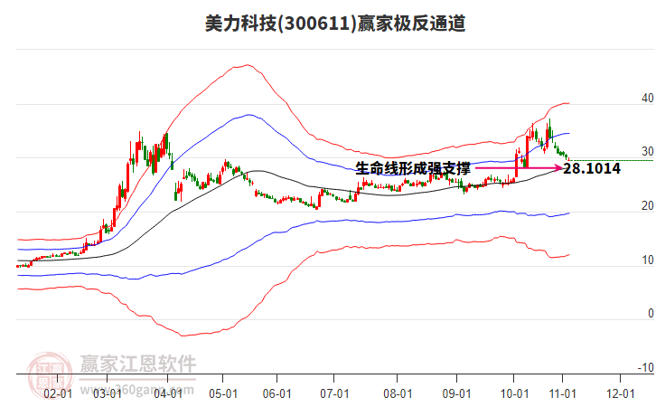 依據(jù)贏家江恩系統(tǒng)趨勢(shì)工具極反通道分析判斷美力科技300611運(yùn)行在生命線以上強(qiáng)勢(shì)區(qū)域,根據(jù)規(guī)則該股可短線、波段結(jié)合操作;結(jié)合物極必反的原理通過(guò)分鐘圖做盤(pán)中差價(jià),應(yīng)用口訣是:生命線上強(qiáng)勢(shì)走,生命線下難抬頭;紅黃兩條外軌線,壓力支撐顯勢(shì)頭。
