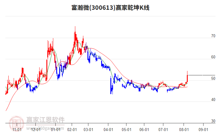 今天富瀚微最高價52.2挑戰(zhàn)了贏家極反通道工具藍色外軌線,受到藍色外軌線強力壓制,最終收盤停留在在藍色外軌線與生命線上方的強勢通道區(qū)域。富瀚微近10個交易日漲幅7.73%。