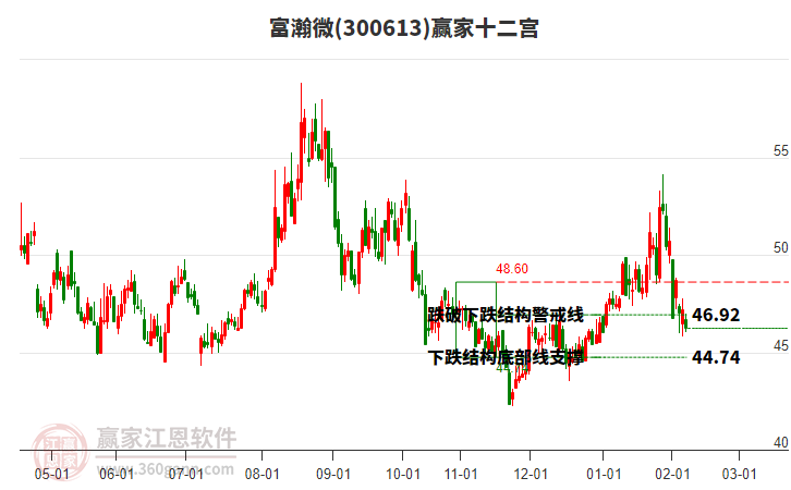 當前股價位于前期2025年11月17日形成的下跌結(jié)構(gòu)頂部線48.6與警戒線46.92之間,該股自近期低點45.8,漲至今日47.01,共上漲1.21元,漲幅2.64%。依據(jù)贏家十二宮多空能量守恒規(guī)則,下跌結(jié)構(gòu)警戒線是多空能量平衡爭奪點,突破或跌破往往意味著平衡打破。當前股價若能站穩(wěn)警戒線位置,多方能量有望主導上攻,向上頂部線位置尋找多空能量平衡位。如股價不能有效站穩(wěn)警戒線,則空方能量主導下探,向底部線附近尋找新的多空能量平衡位。
