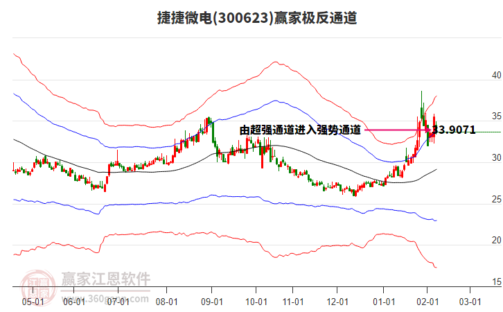 目前捷捷微電最高價35.57挑戰(zhàn)了贏家極反通道工具上方紅色外軌線,受到上方紅色外軌線強力壓制,最終收盤停留在在上方紅色外軌線與藍色外軌線上方的超強通道區(qū)域。捷捷微電近10個交易日漲幅10.74%。
