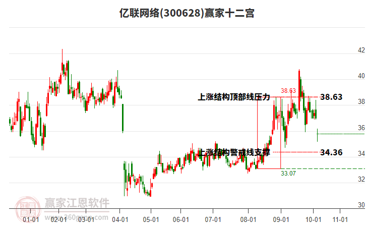 300628億聯(lián)網(wǎng)絡(luò)處于贏家江恩空頭中期反彈形態(tài),11月12日發(fā)出江恩筑頂信號后,經(jīng)過19日,今日再次發(fā)出江恩底分型并發(fā)出江恩筑底信號,中長線均在空頭下跌趨勢中。億聯(lián)網(wǎng)絡(luò)今日高開0.01元,截止目前微