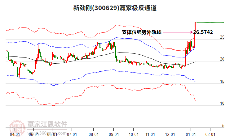今天新勁剛最高價24.56挑戰(zhàn)了贏家極反通道工具上方紅色外軌線,受到上方紅色外軌線強力壓制,最終收盤停留在在上方紅色外軌線與藍色外軌線上方的超強通道區(qū)域。新勁剛近10個交易日漲幅20.82%。