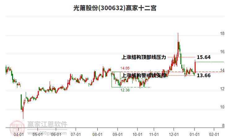 2月13日股價位于前期2026年2月6日形成的下跌結構警戒線14.5與底部線13.39之間,股價自近期低點1月30日13.39元上攻至今日14.0,漲幅4.56%。依據(jù)贏家十二宮多空能量守恒規(guī)則,下跌結構警戒線是多空能量平衡點,突破或跌破往往意味著平衡打破。若近期股價能有效突破警戒線14.5,則多方能量主導有望上攻,頂部線15.61尋找新的多空能量平衡位。如未能突破站穩(wěn)警戒線,空方能量可能主導,則向下尋底部線13.39尋找多空能量平衡位。