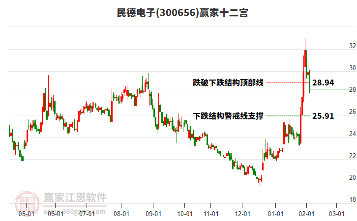 目前300656民德電子以上影小陰線收盤,近期時間窗口為:1月12日