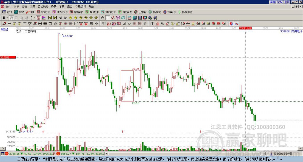 目前300656民德電子以上影小陰線收盤(pán),近期時(shí)間窗口為:1月12日