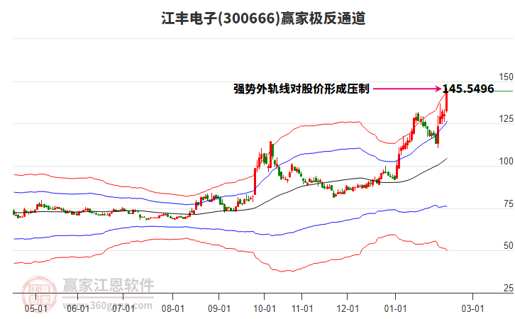 2月13日江豐電子300666最高價147.88挑戰(zhàn)了贏家極反通道工具上方紅色外軌線,受到上方紅色外軌線強力壓制,最終收盤停留在在上方紅色外軌線與藍(lán)色外軌線上方的超強通道區(qū)域。江豐電子300666近1