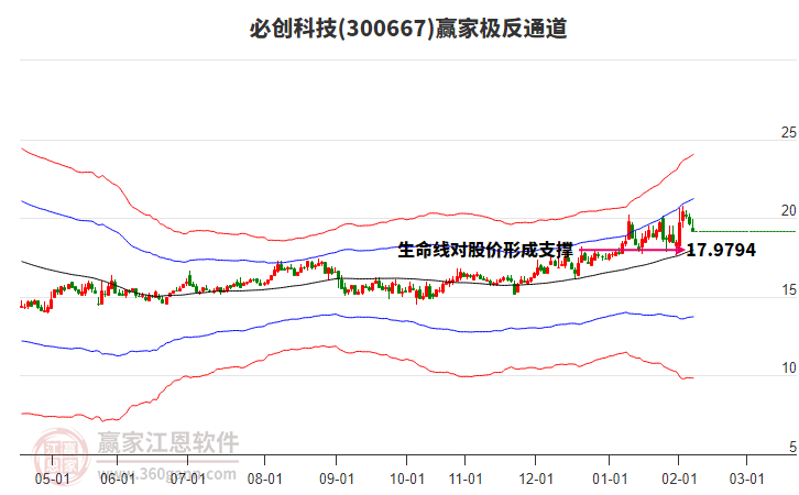 依據贏家江恩系統(tǒng)趨勢工具極反通道分析判斷必創(chuàng)科技300667運行在生命線以下弱勢區(qū)域,根據規(guī)則該股短線輕倉參與,股價跌至弱勢外軌線后波段再結合其它工具信號建倉。應用口訣是:生命線上強勢走,生命線下難抬頭;紅黃兩條外軌線,壓力支撐顯勢頭。