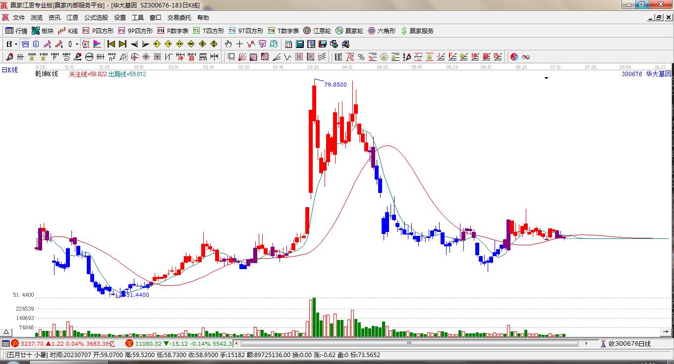 華大基因(300676)處于贏家江恩多頭主線形態(tài),今日重心上移,短期持續(xù)上漲,從12月5日形成中期底分型后,行情經(jīng)歷一波上漲,突破前高形成中期初次筑底信號,長期處于多頭上漲趨勢。華大基因今日低開,截止