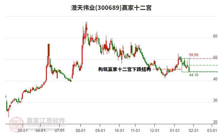當(dāng)前股價(jià)位于前期2026年1月26日形成的下跌結(jié)構(gòu)頂部線50.5與警戒線47.33之間,今日小幅下跌2.83%,以48.7元光腳小陰線收盤(pán)。依據(jù)贏家十二宮多空能量守恒規(guī)則,下跌結(jié)構(gòu)警戒線是多空能量平衡爭(zhēng)奪點(diǎn),突破或跌破往往意味著平衡打破。當(dāng)前股價(jià)若能站穩(wěn)警戒線位置,多方能量有望主導(dǎo)上攻,向上頂部線位置尋找多空能量平衡位。如股價(jià)不能有效站穩(wěn)警戒線,則空方能量主導(dǎo)下探,向底部線附近尋找新的多空能量平衡位。
