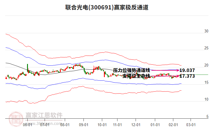 依據(jù)贏家江恩系統(tǒng)趨勢(shì)工具極反通道分析判斷聯(lián)合光電300691運(yùn)行在生命線以上強(qiáng)勢(shì)區(qū)域,根據(jù)規(guī)則該股可短線、波段結(jié)合操作;結(jié)合物極必反的原理通過(guò)分鐘圖做盤(pán)中差價(jià),應(yīng)用口訣是:生命線上強(qiáng)勢(shì)走,生命線下難抬頭;紅黃兩條外軌線,壓力支撐顯勢(shì)頭。