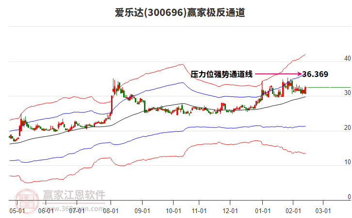 今日愛樂達(dá)300696最高價(jià)34.31上穿了贏家極反通道工具上方紅色外軌線,受到上方紅色外軌線強(qiáng)力壓制,最終收盤停留在在上方紅色外軌線與藍(lán)色外軌線上方的超強(qiáng)通道區(qū)域。愛樂達(dá)300696近10個(gè)交易日漲