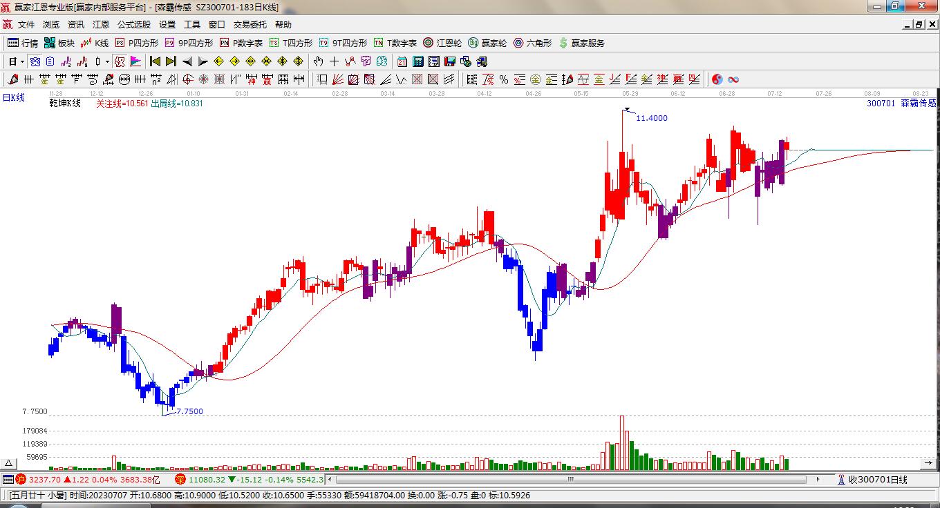 森霸傳感(300701)處于贏家江恩多頭中期回調(diào)形態(tài),11月12日發(fā)出江恩筑頂信號(hào)后,經(jīng)過(guò)23日,今日再次發(fā)出江恩底分型并發(fā)出江恩筑底信號(hào),中長(zhǎng)線均在空頭下跌趨勢(shì)中。森霸傳感(300701)根據(jù)贏家江