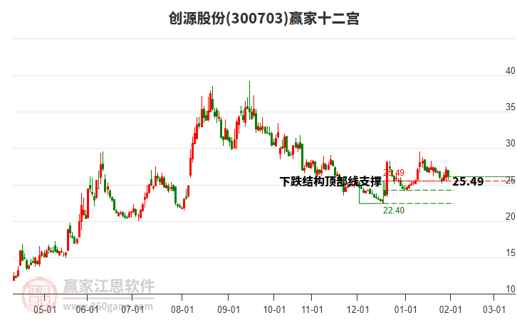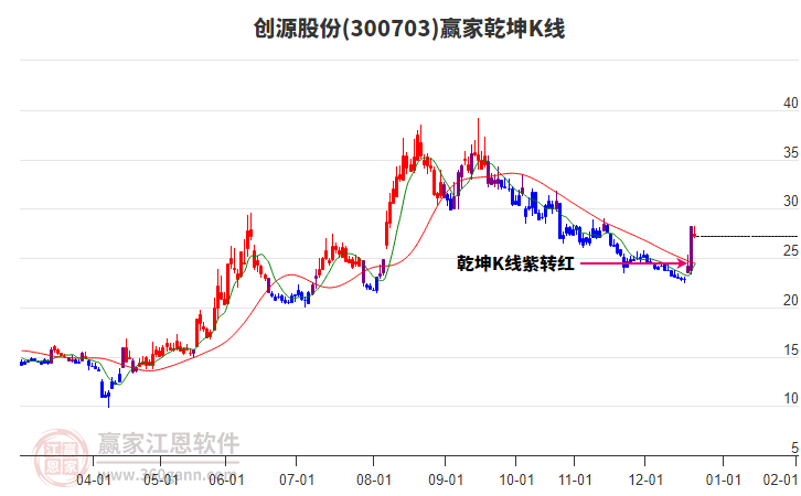 300703創(chuàng)源股份處于贏家江恩多頭中期回調(diào)形態(tài),從12月17日形成底分型后持續(xù)上攻,今日突破前高形成初次江恩筑底信號(hào),中長(zhǎng)線均在空頭下跌趨勢(shì)中。300703創(chuàng)源股份目前漲停,與所屬行業(yè)概念下股票形成