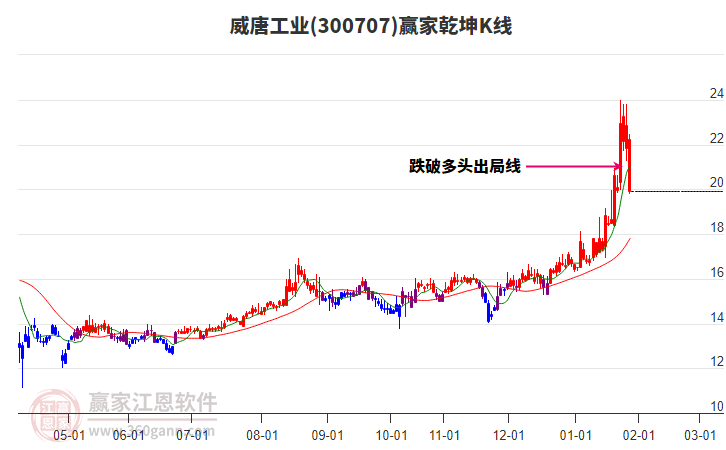 威唐工業(yè)(300707)低開收穿頭破腳大陽線,今日收盤價為20.62