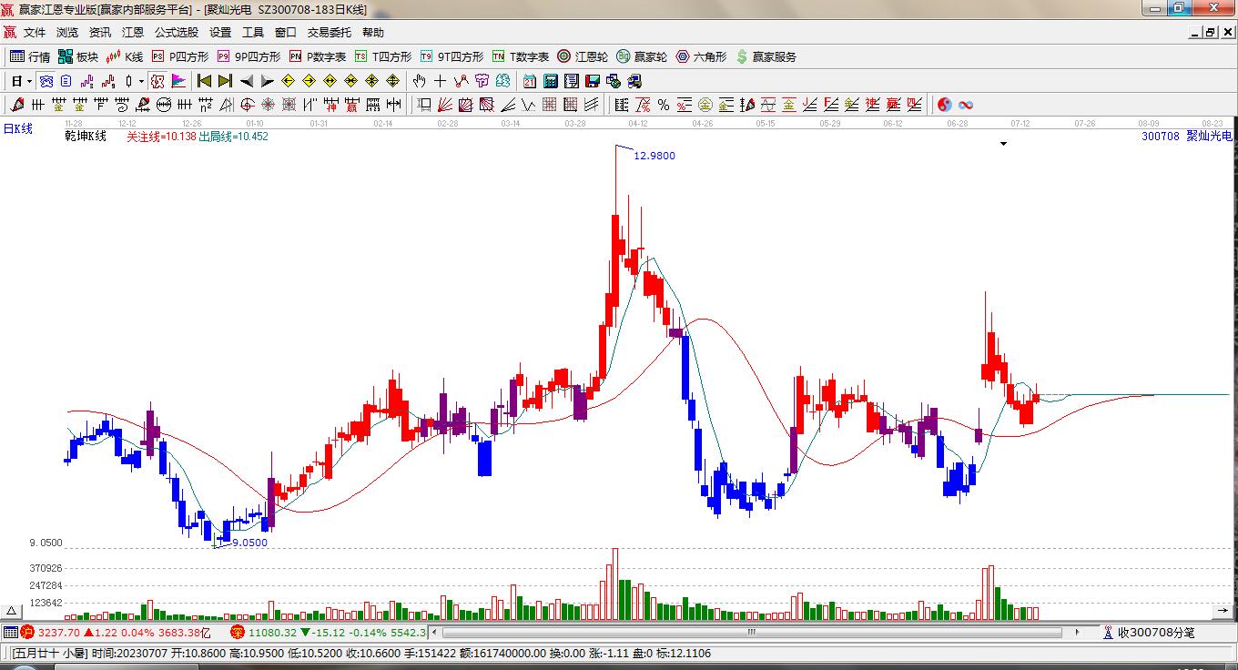 聚燦光電(300708)處于贏家江恩多頭主線形態(tài),今日重心上移,短期持續(xù)上漲,從11月21日形成中期底分型后,行情經(jīng)歷一波上漲,突破前高形成中期初次筑底信號(hào),長(zhǎng)期處于多頭上漲趨勢(shì)。聚燦光電今日跳空高開