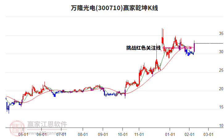 當天萬隆光電最高價32.79挑戰(zhàn)了贏家極反通道工具上方紅色外軌線,受到上方紅色外軌線強力壓制,最終收盤停留在在上方紅色外軌線與藍色外軌線上方的超強通道區(qū)域。萬隆光電近10個交易日漲幅16.4%。
