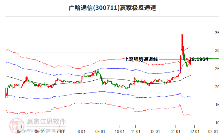 依據贏家江恩系統(tǒng)趨勢工具極反通道分析判斷廣哈通信300711運行在生命線以上強勢區(qū)域,根據規(guī)則該股可短線、波段結合操作;結合物極必反的原理通過分鐘圖做盤中差價,應用口訣是:生命線上強勢走,生命線下難抬頭;紅黃兩條外軌線,壓力支撐顯勢頭。