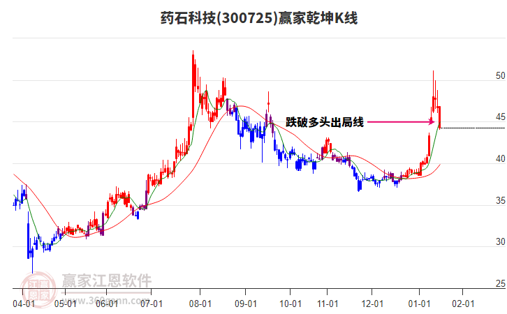 300725藥石科技處于贏家江恩多頭次主線形態(tài),12月25日發(fā)出江恩筑底信號(hào)后,經(jīng)過32日,今日形成短期筑頂信號(hào),短期多頭趨勢(shì)已被破壞,中期多頭趨勢(shì)延續(xù),但長(zhǎng)期處于回調(diào)中。藥石科技今日低開后持續(xù)下跌,
