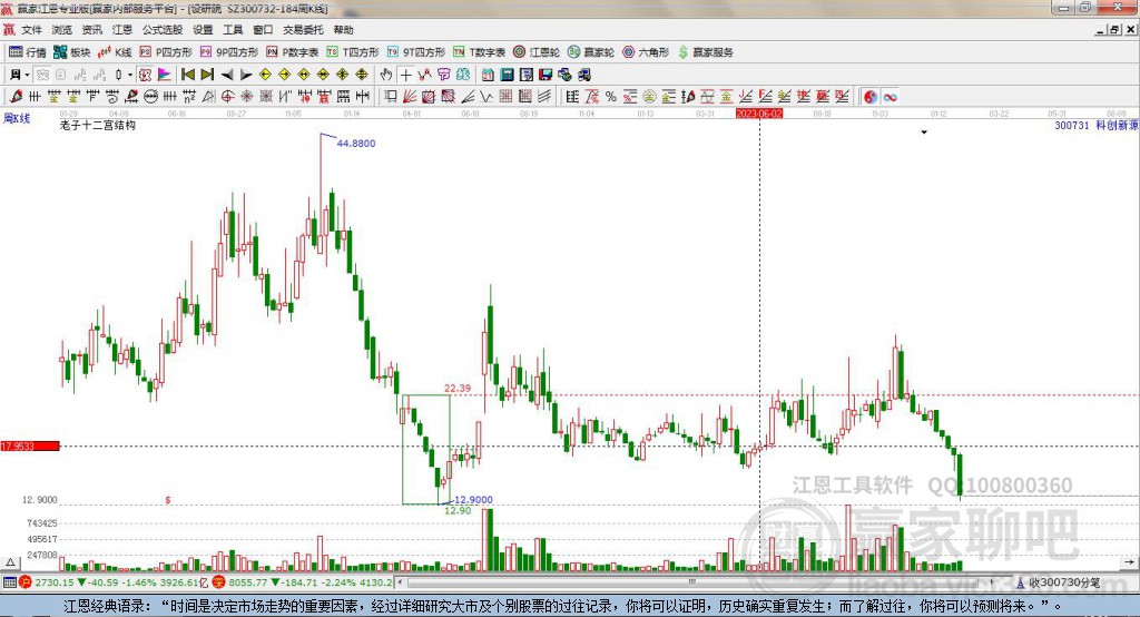 依據(jù)贏家江恩乾坤K線工具展示,目前股價處于藍色區(qū)域,本周K線以陽線收盤,周K線收于出局線下方。近期波段低點為2月6日17.46點,若跌破前期低點17.46,將形成短期下行趨勢,如短期股價快速進入紅色區(qū)域,有望波段走強。