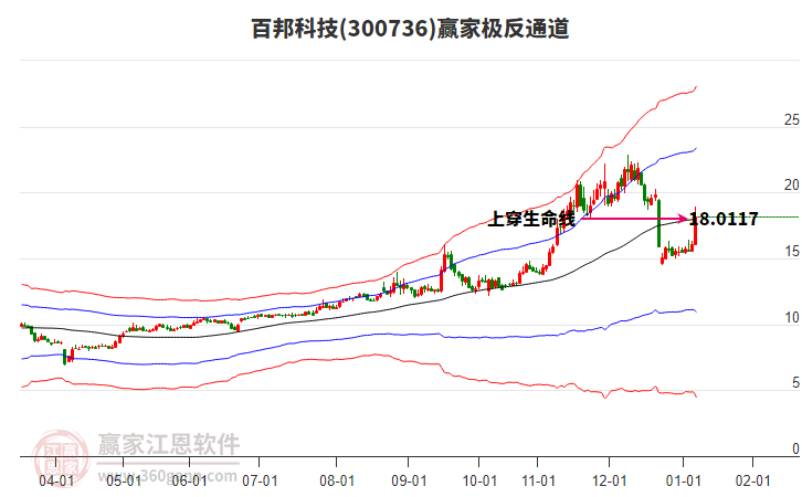 300736百邦科技低開收下影中陽線,處于超強(qiáng)通道延續(xù)上漲趨勢(shì)