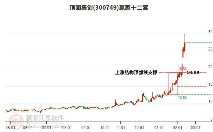 300749頂固集創(chuàng)目前漲停,所屬板塊工業(yè)4.0、智能家居、人工智能、家居用品短期底分型后持續(xù)上攻。300749頂固集創(chuàng)截止目前上穿黃金價格分割工具關(guān)鍵點位25.33元,根據(jù)贏家江恩黃金價格分割工具展