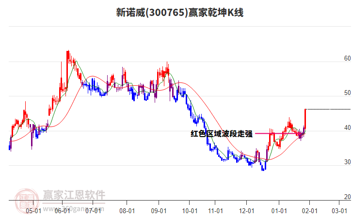 依據贏家江恩系統(tǒng)趨勢工具極反通道分析判斷新諾威300765運行在生命線以上強勢區(qū)域,根據規(guī)則該股可短線、波段結合操作;結合物極必反的原理通過分鐘圖做盤中差價,應用口訣是:生命線上強勢走,生命線下難抬頭;紅黃兩條外軌線,壓力支撐顯勢頭。
