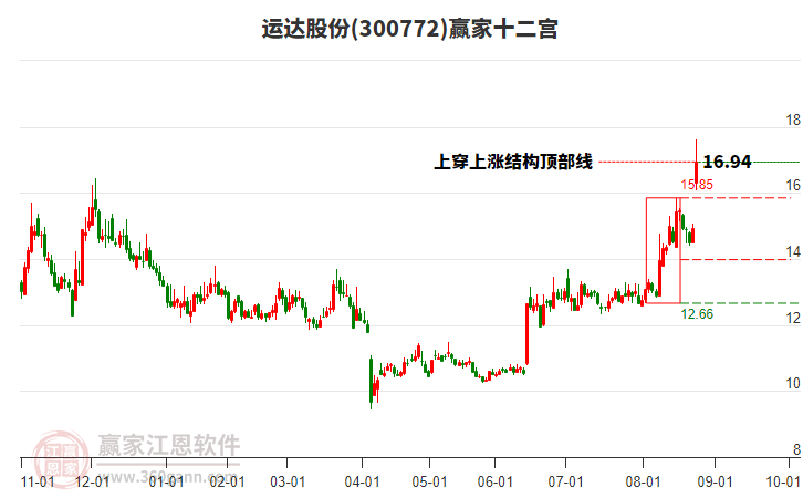 周三運(yùn)達(dá)股份最高價(jià)18.14上穿了贏家極反通道工具生命線,受到生命線強(qiáng)力壓制,最終收盤停留在在生命線與藍(lán)色下軌線上方的弱勢(shì)通道區(qū)域。運(yùn)達(dá)股份近10個(gè)交易日漲幅7.33%。