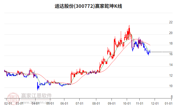 運(yùn)達(dá)股份300772上漲遇阻 受藍(lán)色外軌線壓制 以下影陰線收盤