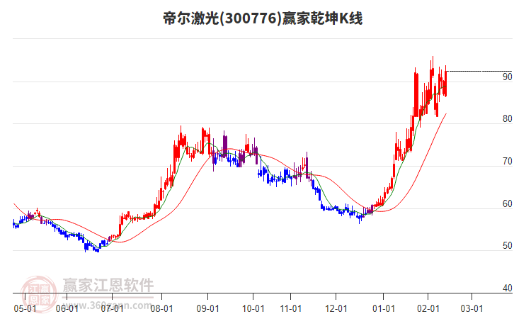 目前300776帝爾激光以上下影中陽(yáng)線收盤(pán),近期時(shí)間窗口為:1月26日
