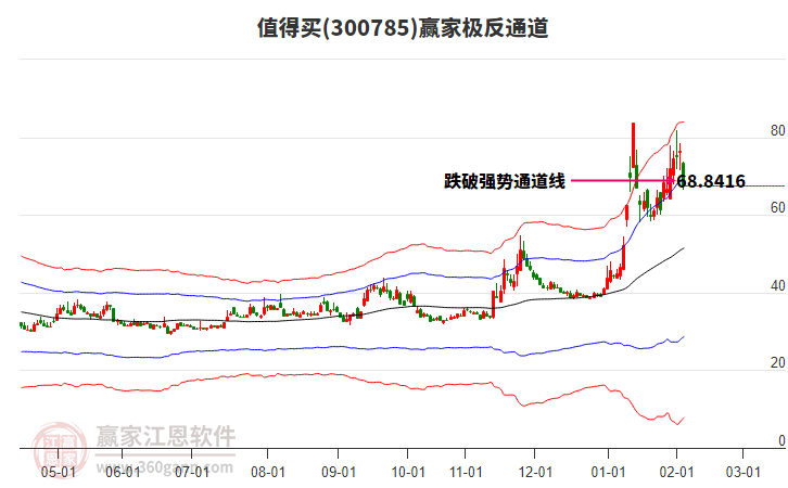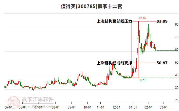 依據(jù)贏家江恩系統(tǒng)趨勢(shì)工具極反通道分析判斷值得買(mǎi)300785運(yùn)行在生命線以上強(qiáng)勢(shì)區(qū)域,根據(jù)規(guī)則該股可短線、波段結(jié)合操作;結(jié)合物極必反的原理通過(guò)分鐘圖做盤(pán)中差價(jià),應(yīng)用口訣是:生命線上強(qiáng)勢(shì)走,生命線下難抬頭;紅黃兩條外軌線,壓力支撐顯勢(shì)頭。