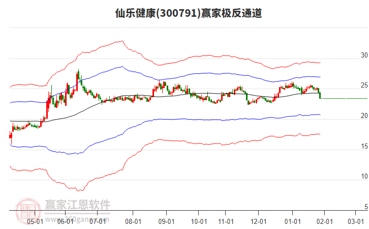 依據(jù)贏家江恩系統(tǒng)趨勢工具極反通道分析判斷仙樂健康300791運行在生命線以下弱勢區(qū)域,根據(jù)規(guī)則該股短線輕倉參與,股價跌至弱勢外軌線后波段再結(jié)合其它工具信號建倉。應(yīng)用口訣是:生命線上強勢走,生命線下難抬頭;紅黃兩條外軌線,壓力支撐顯勢頭。