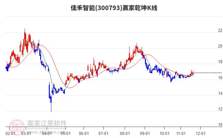 11月26日佳禾智能300793最高價(jià)19.4上穿了贏家極反通道工具藍(lán)色外軌線,受到藍(lán)色外軌線強(qiáng)力壓制,最終收盤停留在在藍(lán)色外軌線與生命線上方的強(qiáng)勢(shì)通道區(qū)域。佳禾智能300793近10個(gè)交易日漲幅10