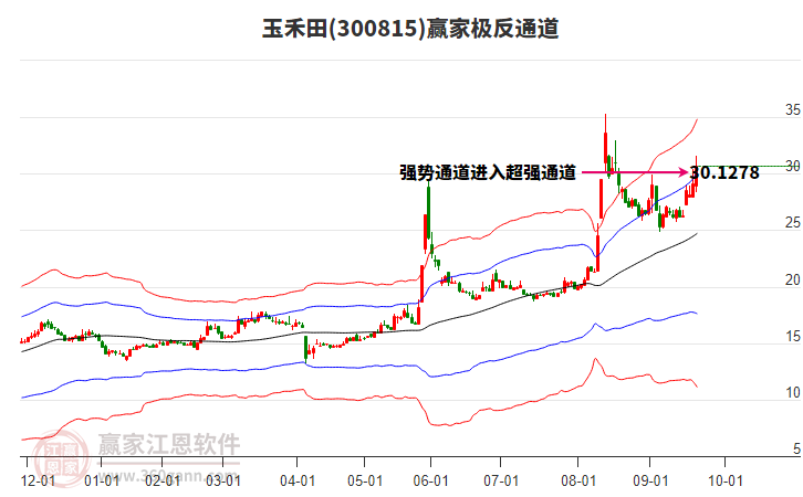 依據(jù)贏家江恩系統(tǒng)趨勢工具極反通道分析判斷玉禾田300815運行在生命線以下弱勢區(qū)域,根據(jù)規(guī)則該股短線輕倉參與,股價跌至弱勢外軌線后波段再結(jié)合其它工具信號建倉。應(yīng)用口訣是:生命線上強(qiáng)勢走,生命線下難抬頭;紅黃兩條外軌線,壓力支撐顯勢頭。