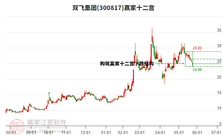 300817雙飛集團(tuán)處于贏家江恩多頭主線形態(tài),12月22日發(fā)出江恩筑頂信號(hào)后,經(jīng)過49日,今日再次發(fā)出江恩底分型并發(fā)出江恩筑底信號(hào),中期雖然處于回調(diào)中,但長(zhǎng)期多頭趨勢(shì)延續(xù)。300817雙飛集團(tuán)根據(jù)贏家