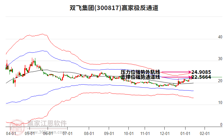 依據(jù)贏家江恩系統(tǒng)趨勢(shì)工具極反通道分析判斷雙飛集團(tuán)300817運(yùn)行在生命線以上強(qiáng)勢(shì)區(qū)域,根據(jù)規(guī)則該股可短線、波段結(jié)合操作;結(jié)合物極必反的原理通過分鐘圖做盤中差價(jià),應(yīng)用口訣是:生命線上強(qiáng)勢(shì)走,生命線下難抬頭;紅黃兩條外軌線,壓力支撐顯勢(shì)頭。