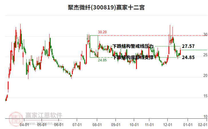 聚杰微纖處于贏家江恩多頭次主線形態(tài),從1月22日形成頂分型后持續(xù)下跌,重心下移,今日跌破前低形成短期初次筑頂信號(hào),短期多頭趨勢(shì)已被破壞,中長(zhǎng)期多頭趨勢(shì)依舊保持。聚杰微纖今日跳空低開,截止目前K線呈現(xiàn)下