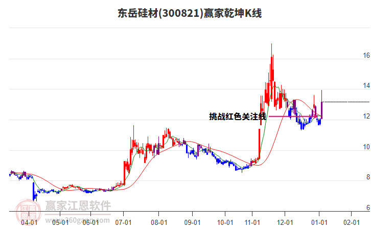 東岳硅材處于贏家江恩多頭主線形態(tài),從12月16日形成底分型后持續(xù)上攻,今日突破前高形成初次江恩筑底信號,中期雖然處于回調(diào)中,但長期多頭趨勢延續(xù)。東岳硅材截至目前K線為上影小陽線,這種K線的出現(xiàn)說明上方