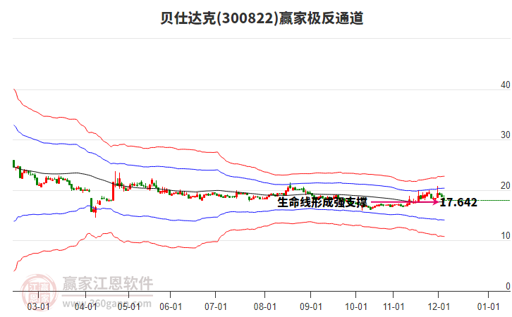 依據(jù)贏家江恩系統(tǒng)趨勢工具極反通道分析判斷貝仕達(dá)克300822運(yùn)行在生命線以上強(qiáng)勢區(qū)域,根據(jù)規(guī)則該股可短線、波段結(jié)合操作;結(jié)合物極必反的原理通過分鐘圖做盤中差價,應(yīng)用口訣是:生命線上強(qiáng)勢走,生命線下難抬頭;紅黃兩條外軌線,壓力支撐顯勢頭。