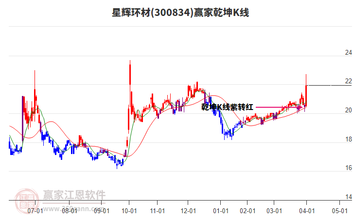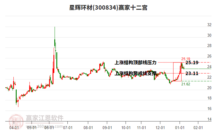 星輝環(huán)材300834最高價上穿上方紅色外軌線 微漲1.52%