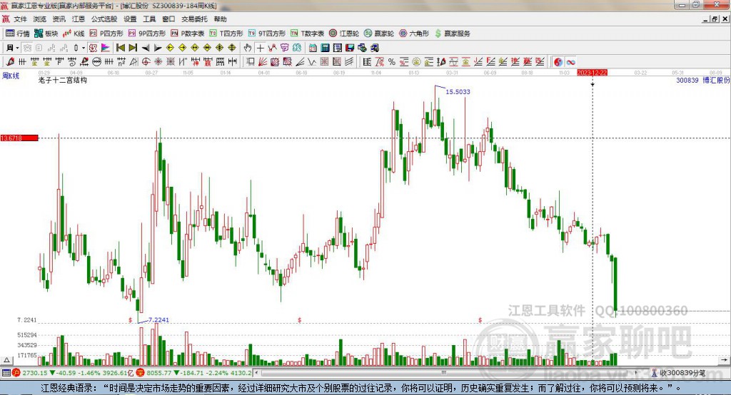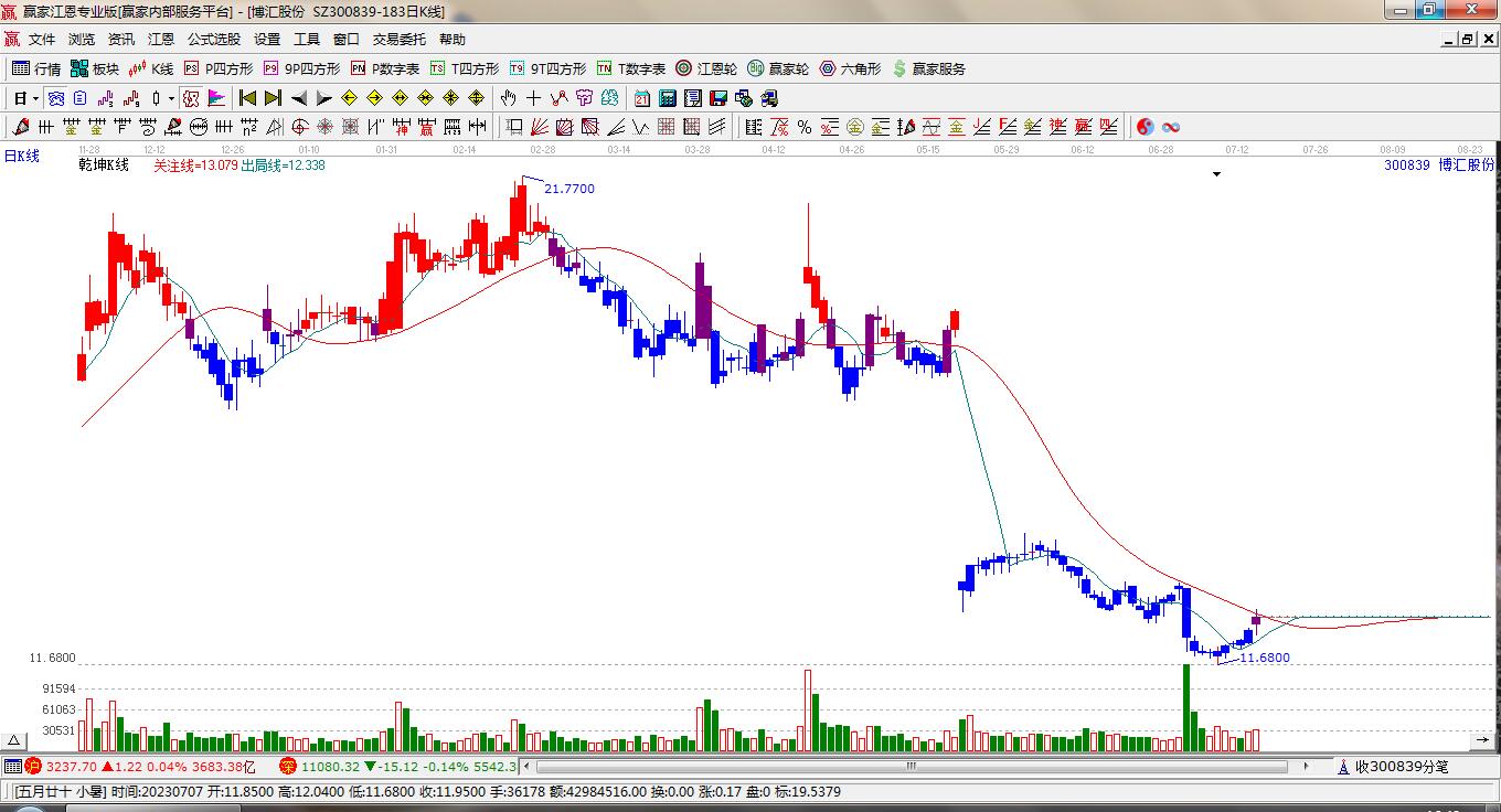 當(dāng)天博匯股份300839以上影中陽線收盤,近期時(shí)間窗口為:2月17日