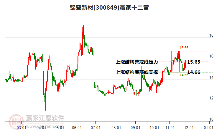 今日300849錦盛新材最高價(jià)19.87上穿了贏家極反通道工具藍(lán)色外軌線,受到藍(lán)色外軌線強(qiáng)力壓制,最終收盤停留在在藍(lán)色外軌線與生命線上方的強(qiáng)勢(shì)通道區(qū)域。300849錦盛新材近10個(gè)交易日漲幅19.86