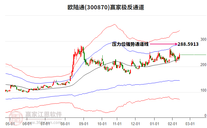 周三歐陸通最高價257.6上穿了贏家極反通道工具藍色外軌線,受到藍色外軌線強力壓制,最終收盤停留在在藍色外軌線與生命線上方的強勢通道區(qū)域。歐陸通近10個交易日漲幅16.88%。