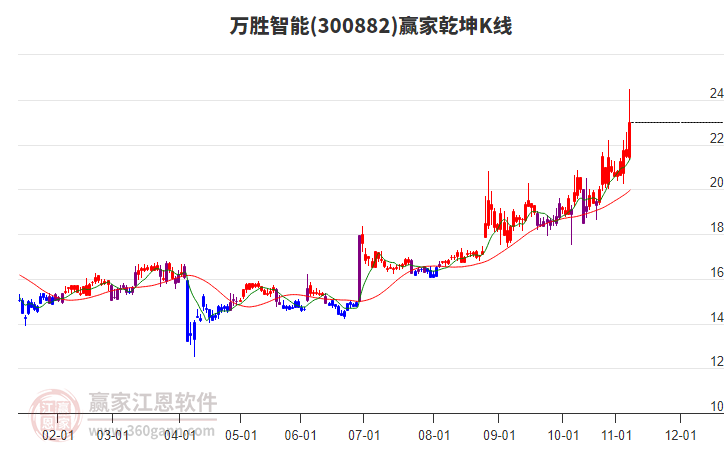 萬勝智能處于贏家江恩多頭主線形態(tài),11月20日發(fā)出江恩筑頂信號后,經(jīng)過25日,今日再次發(fā)出江恩底分型并發(fā)出江恩筑底信號,中期雖然處于回調(diào)中,但長期多頭趨勢延續(xù)。萬勝智能截至目前K線為陽十字星,經(jīng)過一波
