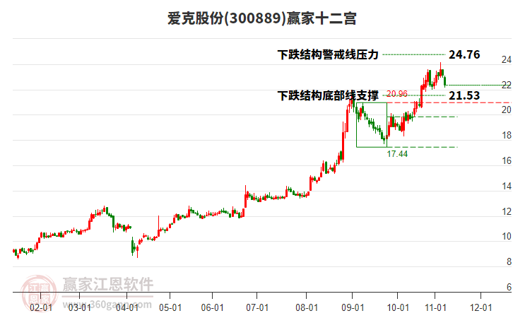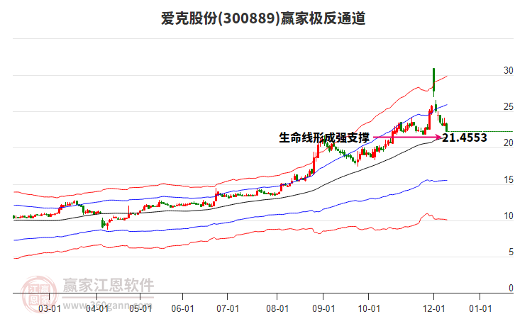 依據(jù)贏家江恩系統(tǒng)趨勢(shì)工具極反通道分析判斷愛(ài)克股份300889運(yùn)行在生命線以上強(qiáng)勢(shì)區(qū)域,根據(jù)規(guī)則該股可短線、波段結(jié)合操作;結(jié)合物極必反的原理通過(guò)分鐘圖做盤(pán)中差價(jià),應(yīng)用口訣是:生命線上強(qiáng)勢(shì)走,生命線下難抬頭;紅黃兩條外軌線,壓力支撐顯勢(shì)頭。