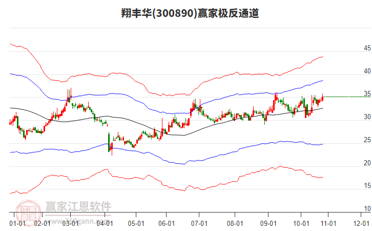 依據(jù)贏家江恩系統(tǒng)趨勢工具極反通道分析判斷翔豐華300890運(yùn)行在生命線以下弱勢區(qū)域,根據(jù)規(guī)則該股短線輕倉參與,股價(jià)跌至弱勢外軌線后波段再結(jié)合其它工具信號建倉。應(yīng)用口訣是:生命線上強(qiáng)勢走,生命線下難抬頭;紅黃兩條外軌線,壓力支撐顯勢頭。