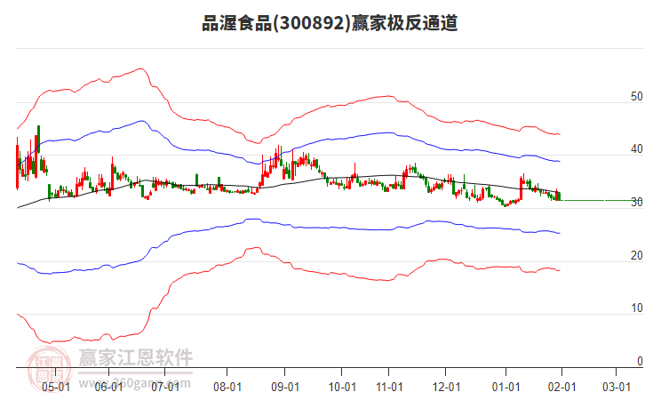 依據(jù)贏家江恩系統(tǒng)趨勢(shì)工具極反通道分析判斷品渥食品300892運(yùn)行在生命線以下弱勢(shì)區(qū)域,根據(jù)規(guī)則該股短線輕倉(cāng)參與,股價(jià)跌至弱勢(shì)外軌線后波段再結(jié)合其它工具信號(hào)建倉(cāng)。應(yīng)用口訣是:生命線上強(qiáng)勢(shì)走,生命線下難抬頭;紅黃兩條外軌線,壓力支撐顯勢(shì)頭。