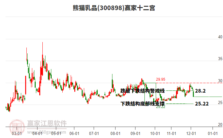 熊貓乳品(300898)根據(jù)贏家江恩極反通道趨勢工具展示,上方壓力位27.7362,下方支撐位22.2067。熊貓乳品(300898)處于贏家江恩多頭次主線形態(tài),12月17日發(fā)出江恩筑底信號后,經(jīng)過2