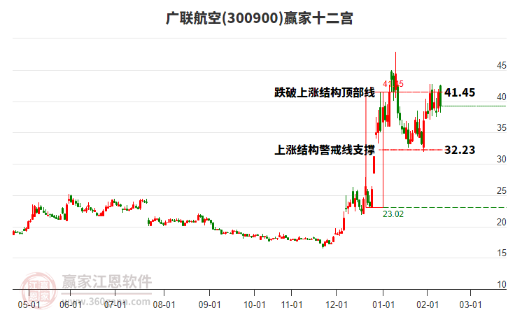 廣聯(lián)航空處于贏家江恩多頭主線形態(tài),從1月29日形成底分型后持續(xù)上攻,今日突破前高形成初次江恩筑底信號(hào),中長(zhǎng)期多頭趨勢(shì)依舊保持。廣聯(lián)航空目前漲幅8.73%,走出獨(dú)立行情。廣聯(lián)航空今日跳空高開(kāi),截止目前K